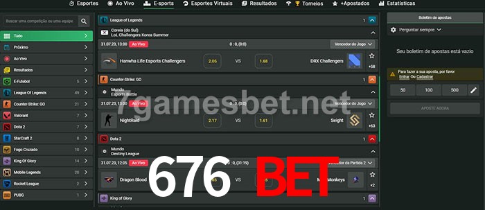 O 676 bet oferece uma grande seleção de opções de apostas em e-sports com probabilidades competitivas